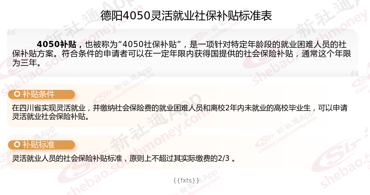 以上就是德阳4050灵活就业社保补贴的相关内容,欢迎关注新社通/下载新社通APP了解更多五险一金专业资讯。