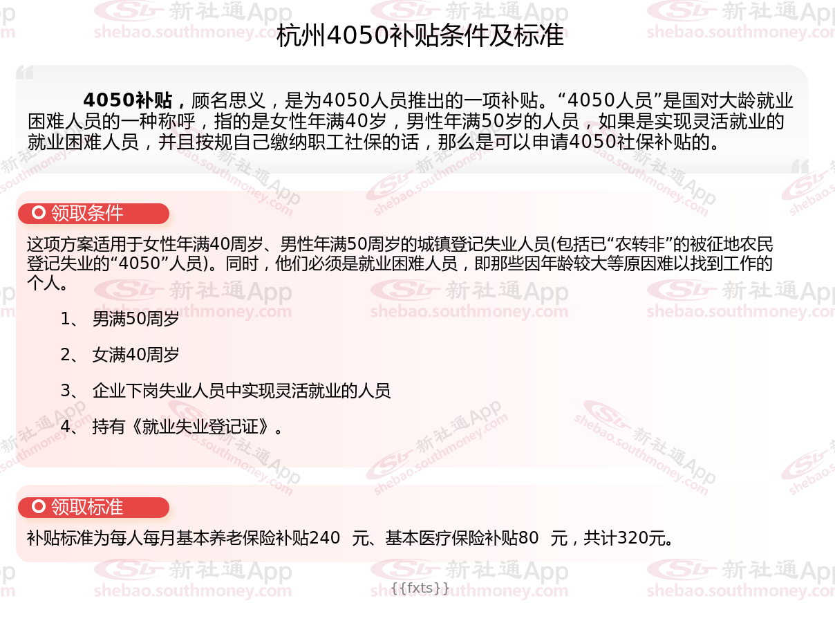 一、2025年杭州4050社保补贴标准及条件是多少?