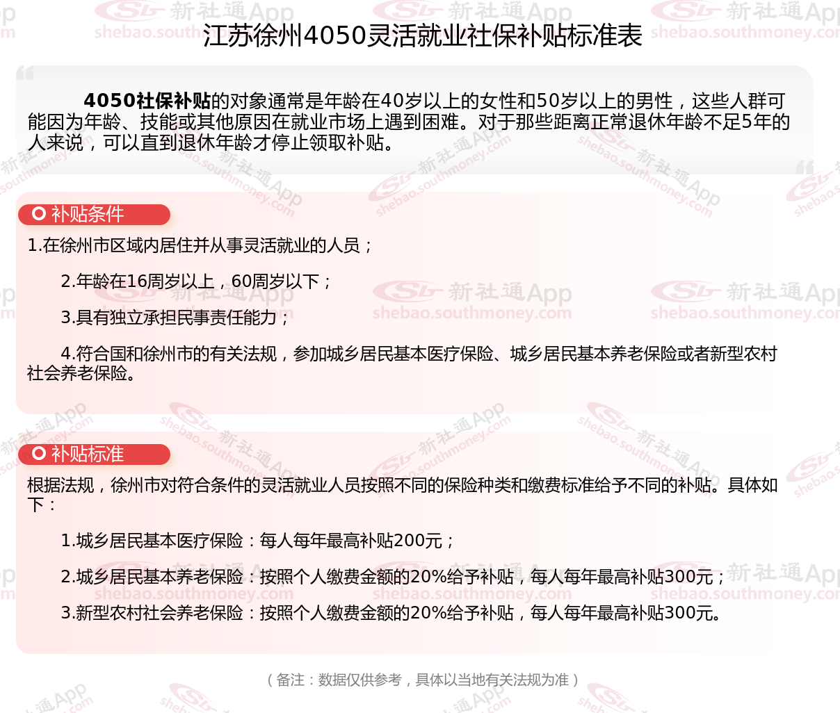 一、2023-2024年江苏徐州4050社保补贴标准及条件,最新如下