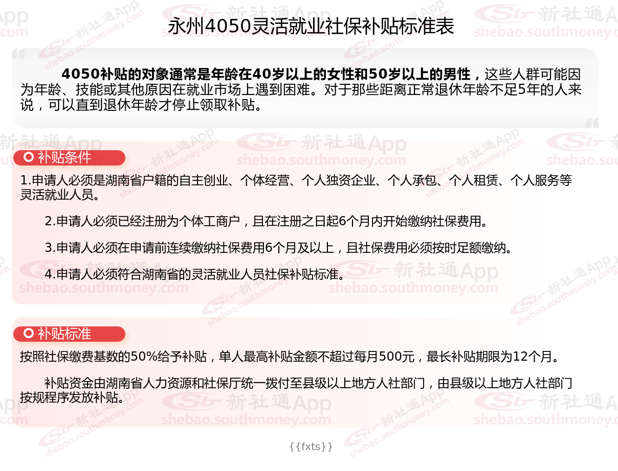 一、2023-2024年永州4050社保补贴标准及条件是多少?