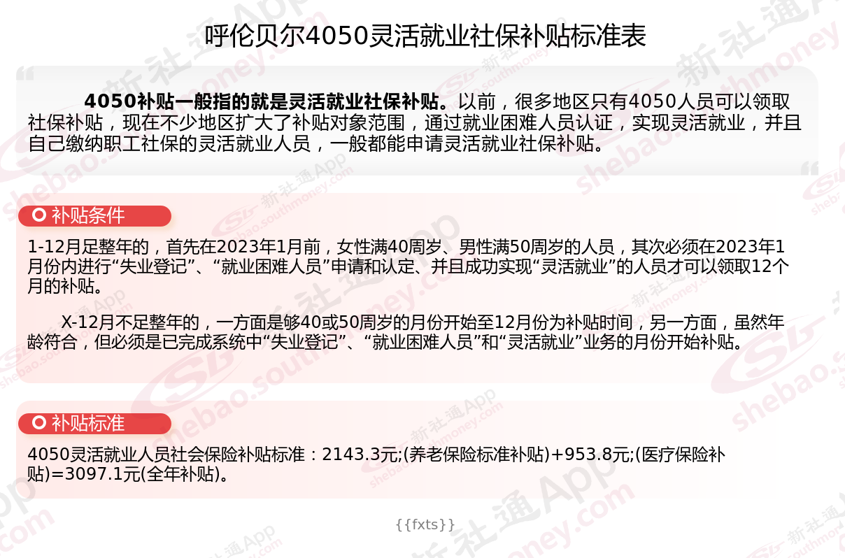二、呼伦贝尔4050社保补贴标准及条件4050社保补贴,最新如下