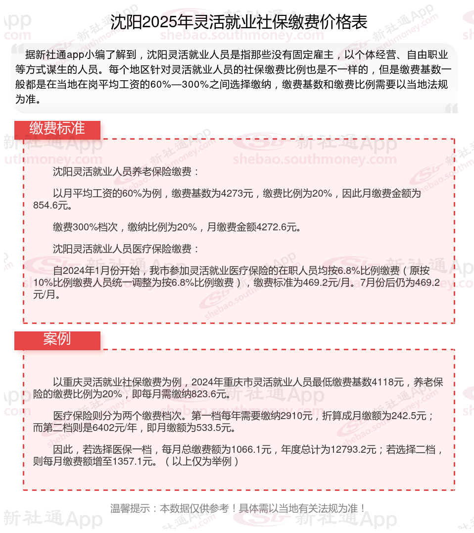 三、沈阳2025年灵活就业社保缴费基数及比例最新消息