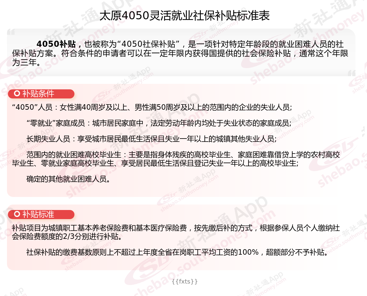 一、太原4050社保补贴标准及条件2025年最新消息