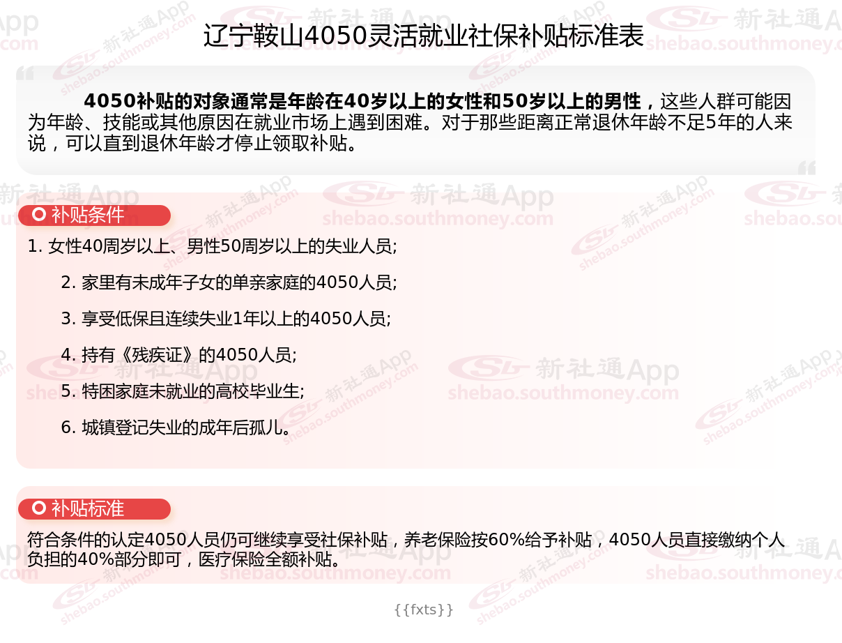 二、辽宁鞍山4050社保补贴标准及条件2025年最新消息