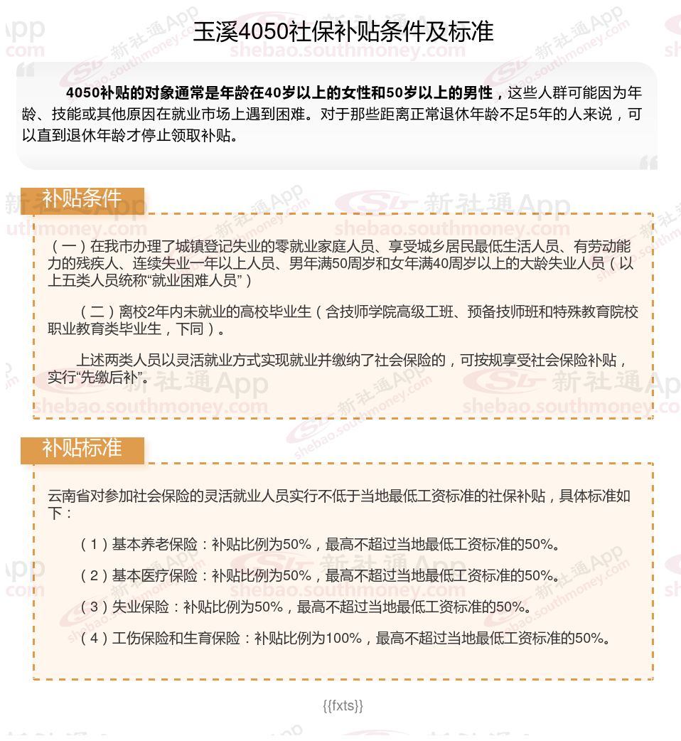 二、2025年玉溪4050社保补贴多少钱?4050社保补贴领取条件什么?