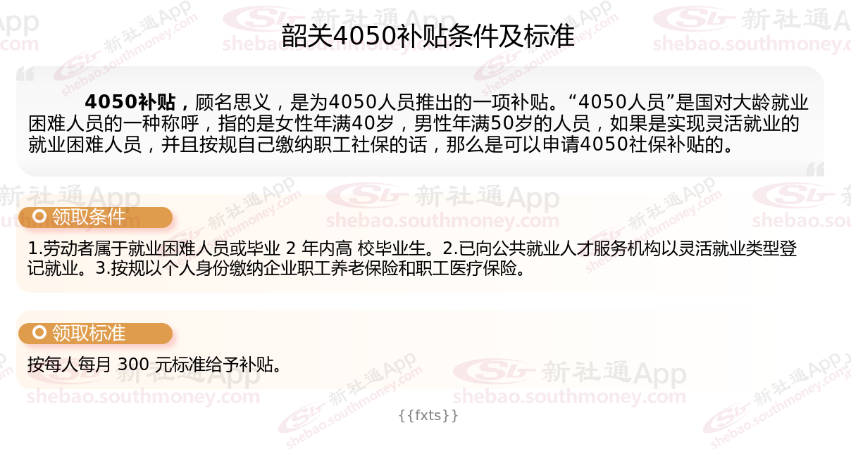 二、2025年韶关4050社保补贴标准,最新领取条件来了