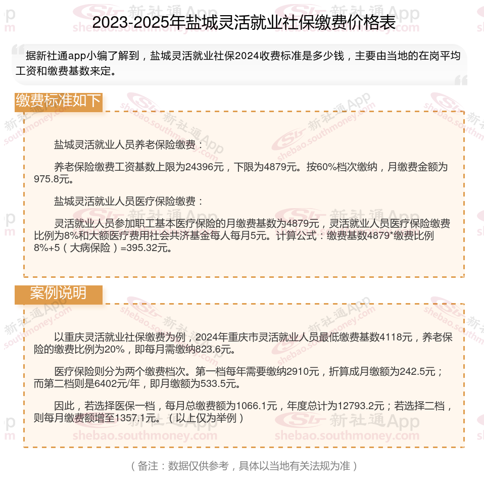 一、2025年盐城灵活就业社保缴费标准公布啦 盐城灵活就业社保多少钱一个月?