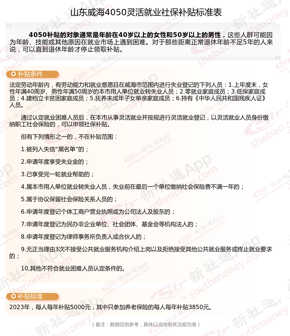 以上就是山东威海4050灵活就业社保补贴的相关内容,欢迎关注新社通/下载新社通APP了解更多五险一金专业资讯。