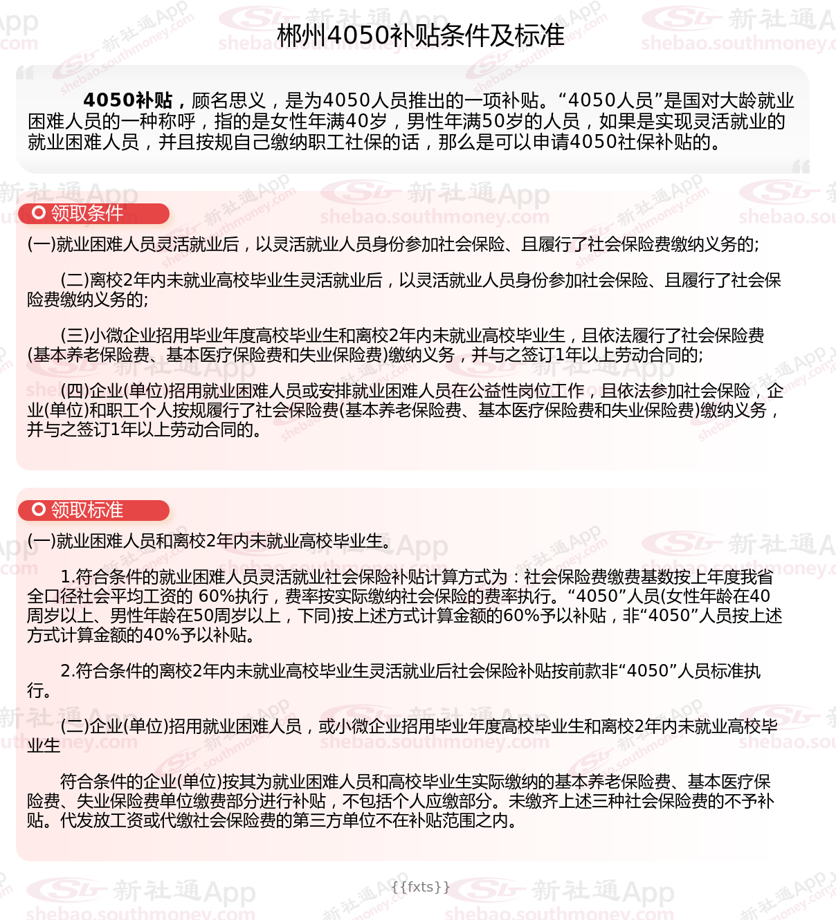 二、郴州4050社保补贴标准及条件2025年,最新如下
