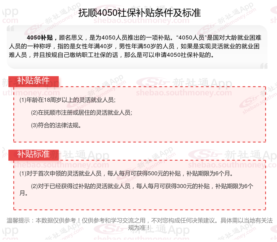 一、2023-2024年抚顺4050社保补贴标准及条件是多少?