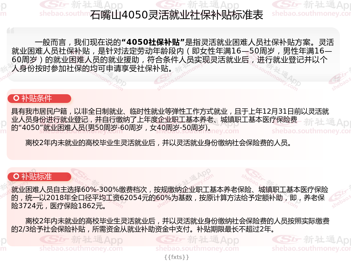 二、石嘴山4050社保补贴标准及条件4050社保补贴,最新如下