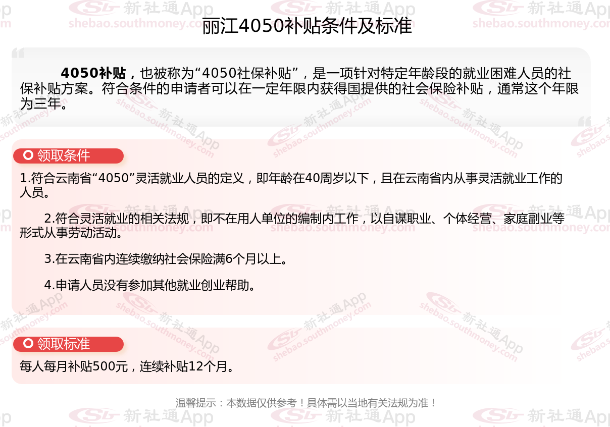 二、2025年丽江灵活就业4050社保补贴标准及条件是什么?来了解一下