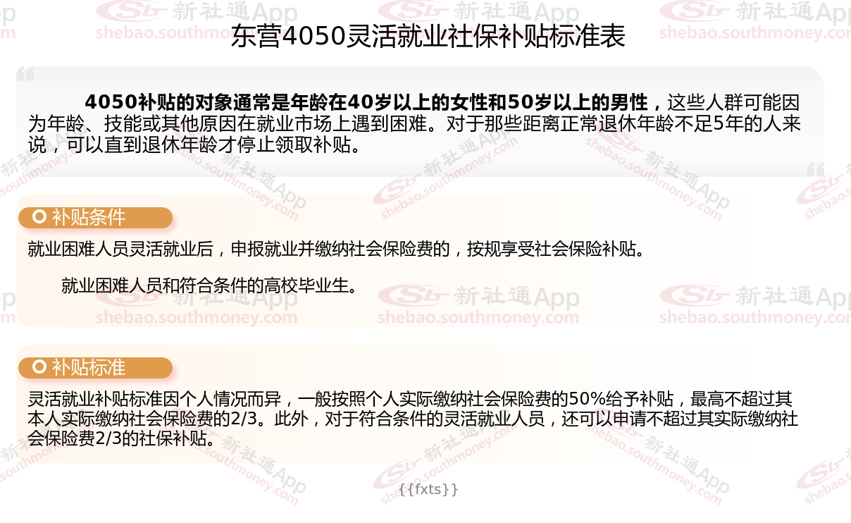 以上就是东营4050灵活就业社保补贴的相关内容,欢迎关注新社通/下载新社通APP了解更多五险一金专业资讯。