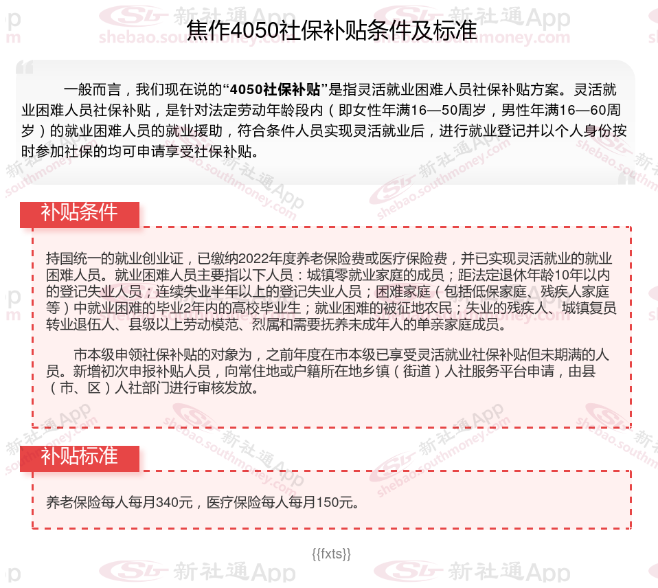 一、2025年焦作4050社保补贴标准是怎么样的?焦作4050一年可拿多少钱?