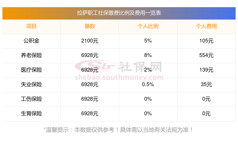 拉萨社保各基数的缴费比例是多少?和新社通小编一起来看看,新社通app-社保缴费查询工具提供的最新数据如下: