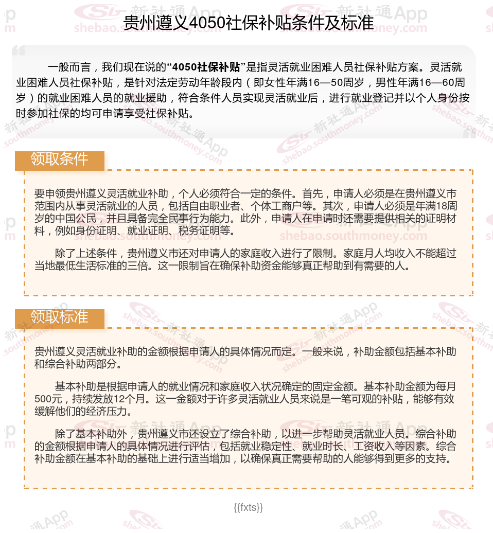 二、贵州遵义灵活就业4050社保补贴标准及条件是什么