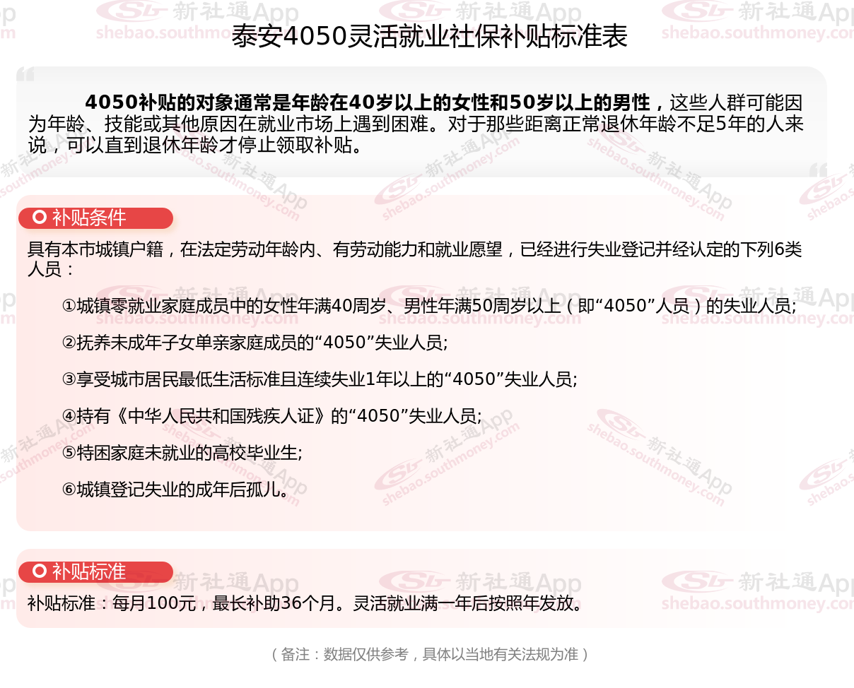 一、泰安4050社保补贴标准及条件2025年最新消息