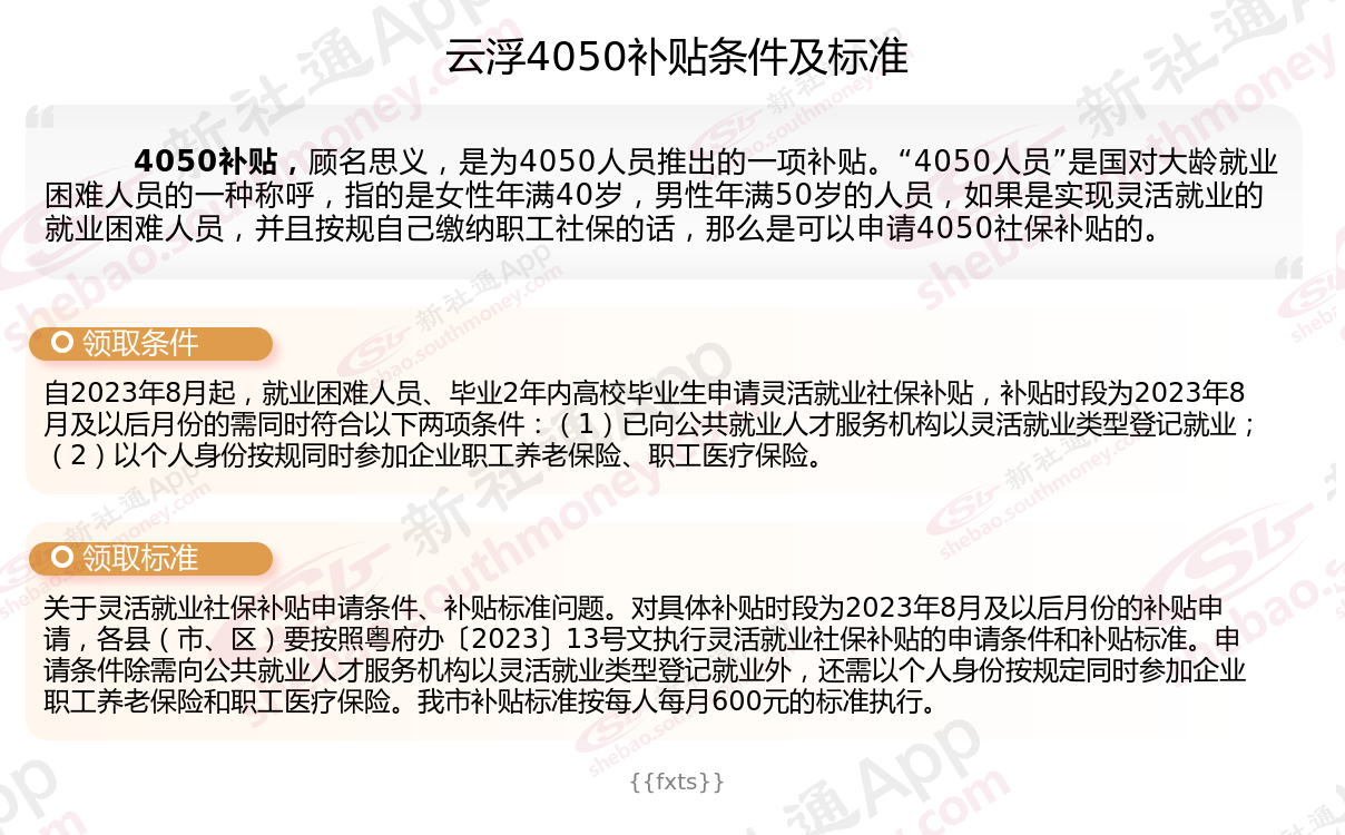 以上就是云浮4050灵活就业社保补贴的相关内容,欢迎关注新社通/下载新社通APP了解更多五险一金专业资讯。