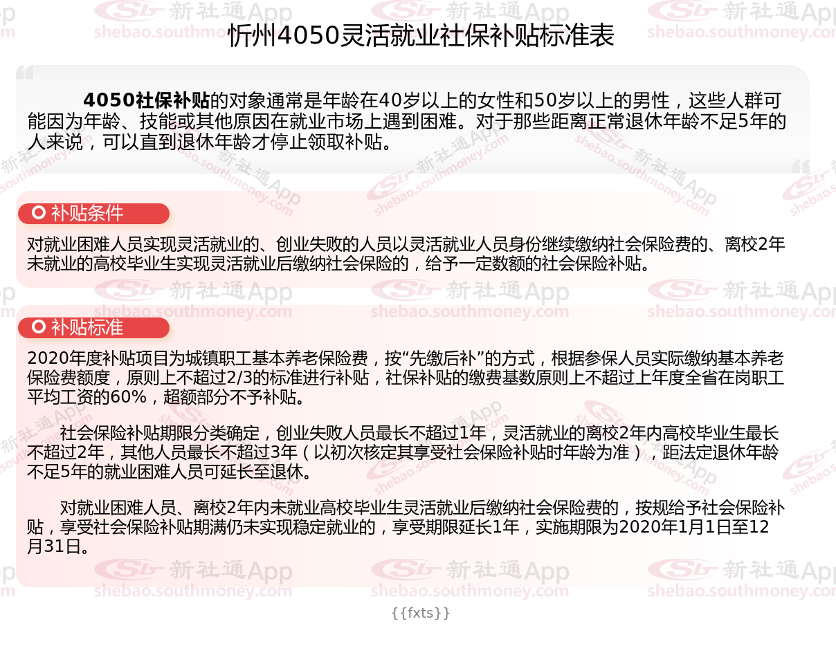 以上就是忻州4050灵活就业社保补贴的相关内容,欢迎关注新社通/下载新社通APP了解更多五险一金专业资讯。