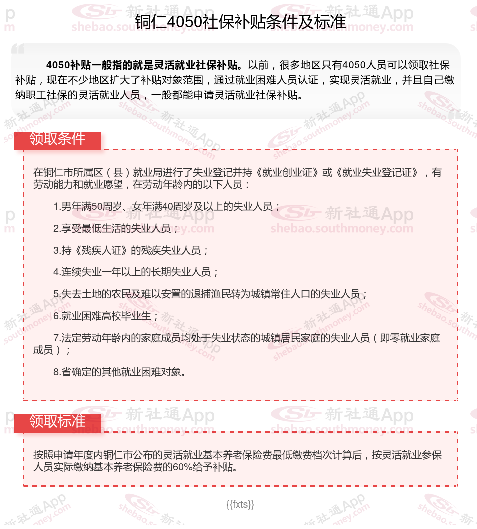 以上就是铜仁4050灵活就业社保补贴的相关内容,欢迎关注新社通/下载新社通APP了解更多五险一金专业资讯。