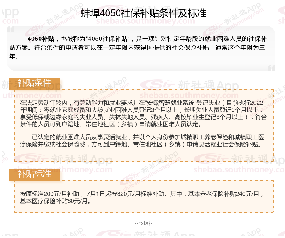 二、2025年蚌埠4050社保补贴标准及条件,最新如下: