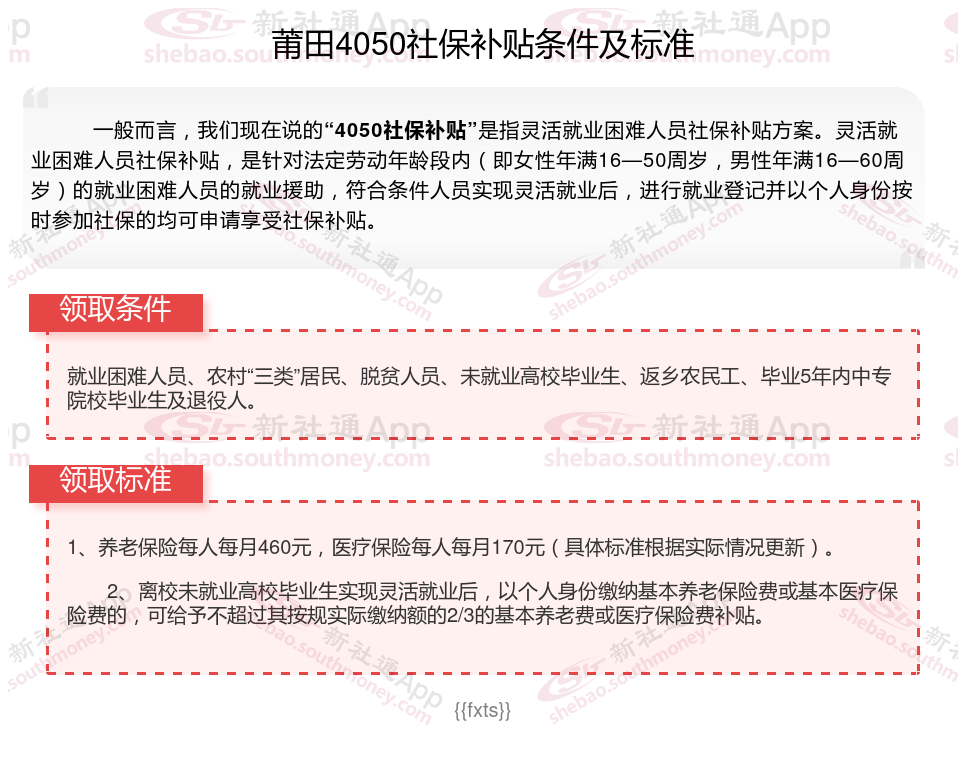 二、莆田4050社保补贴多少钱一个月?莆田4050社保补贴2025年最新标准是多少?
