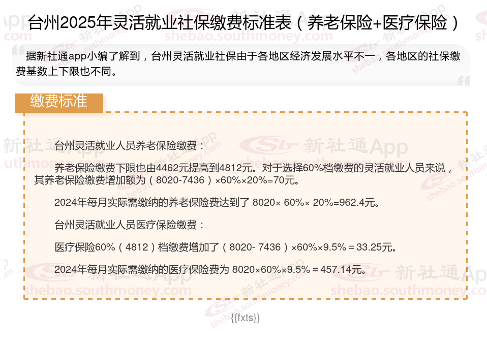 据新社通app数据显示,台州灵活就业人员养老保险缴费基数2024-2025年最新标准如下: