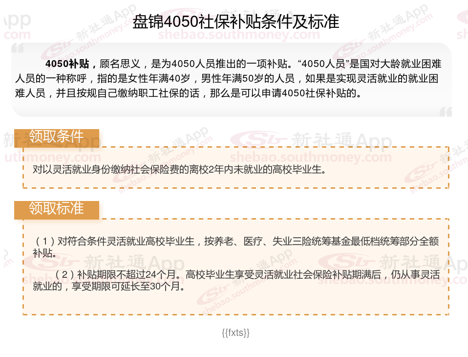 一、盘锦4050社保补贴标准是什么?附条件