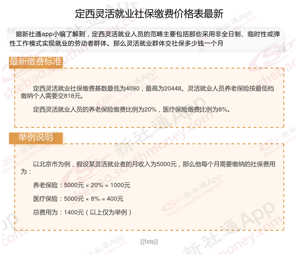 定西灵活就业人员社保缴纳金额怎么计算?根据新社通app-社保缴费查询工具提供的最新数据如下:
