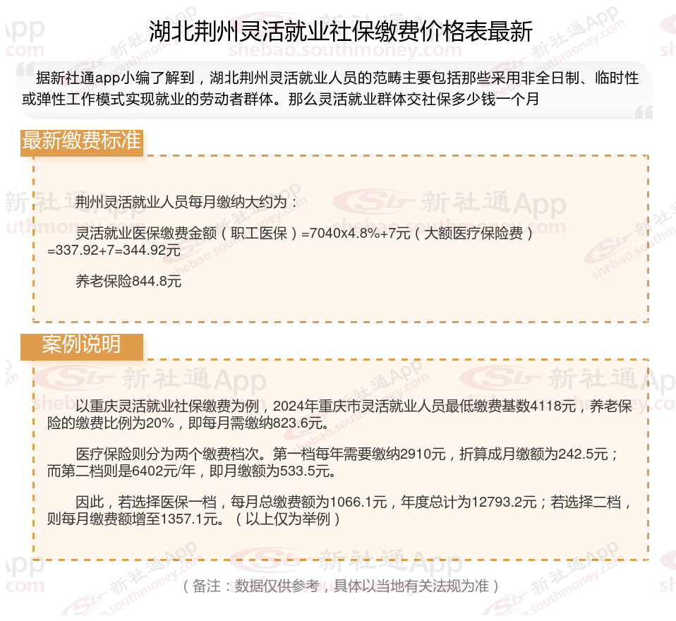 一、2025年湖北荆州灵活就业人员社保养老+医保缴费标准一年多少钱?