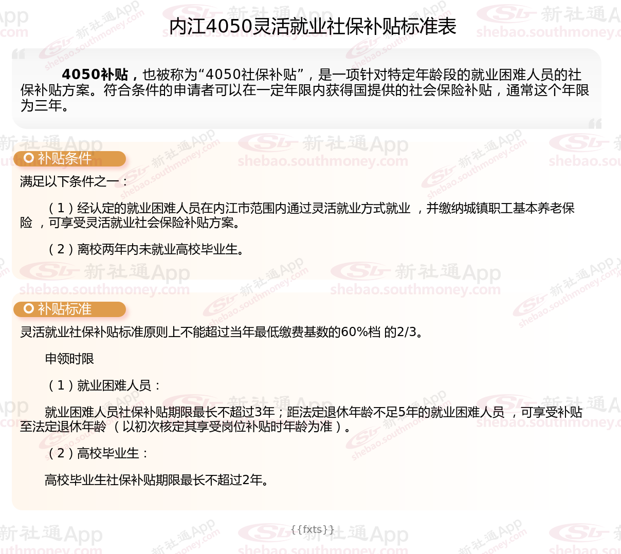以上就是内江4050灵活就业社保补贴的相关内容,欢迎关注新社通/下载新社通APP了解更多五险一金专业资讯。