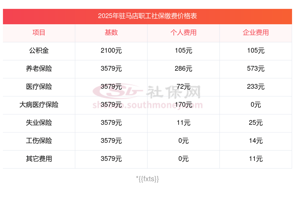 2025年驻马店社保缴费多少钱?下表是2024-2025年驻马店社保费用明细参考,新社通app-社保缴费查询工具提供的最新数据如下:
