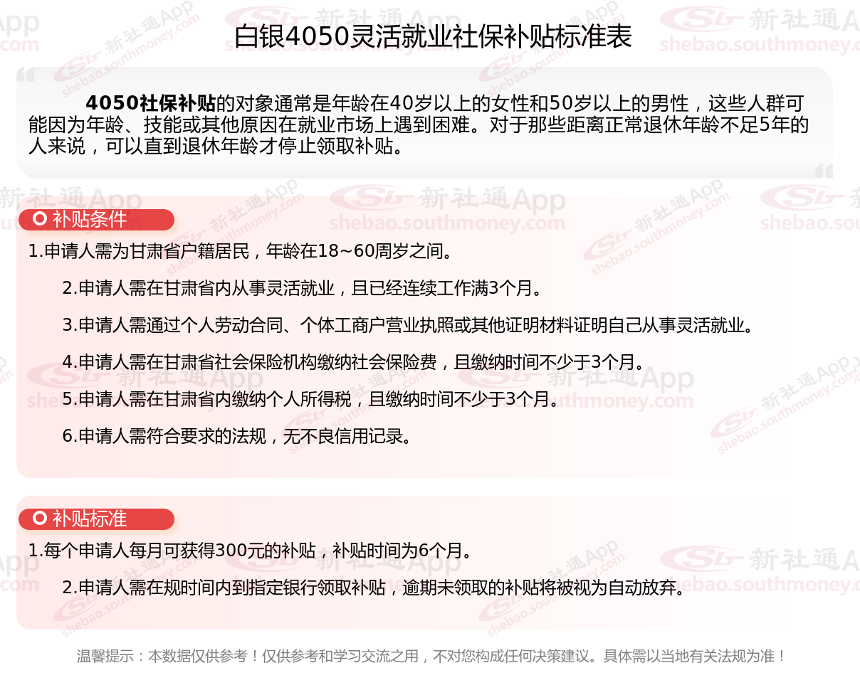 二、白银4050社保补贴多少钱一个月,白银4050社保补贴新规2025年最新标准