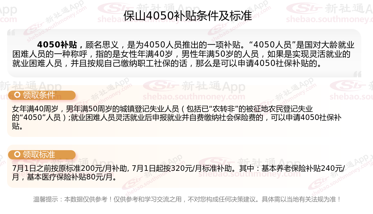 二、保山4050社保补贴标准及条件4050社保补贴,最新如下