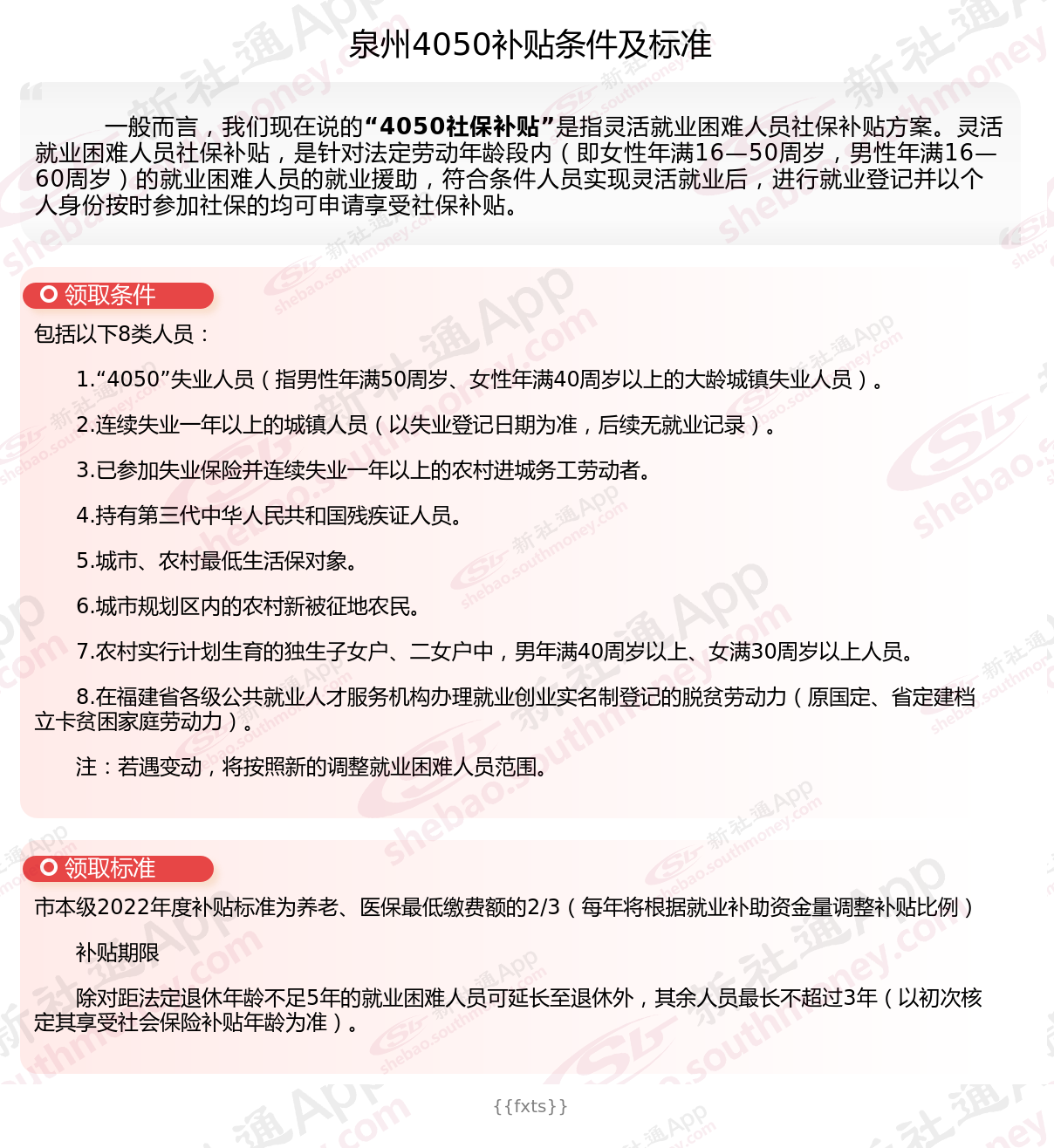 一、2023-2024年泉州4050社保补贴标准及条件,最新如下