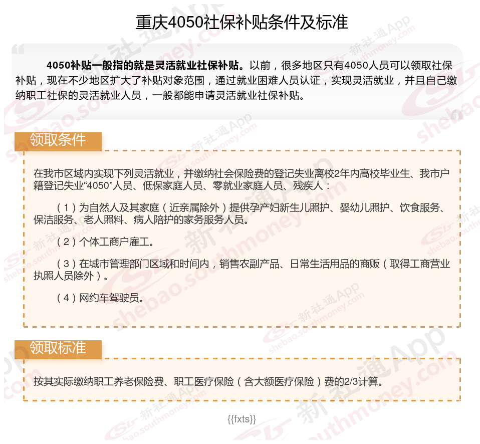 二、重庆4050社保补贴标准及条件2025年最新消息