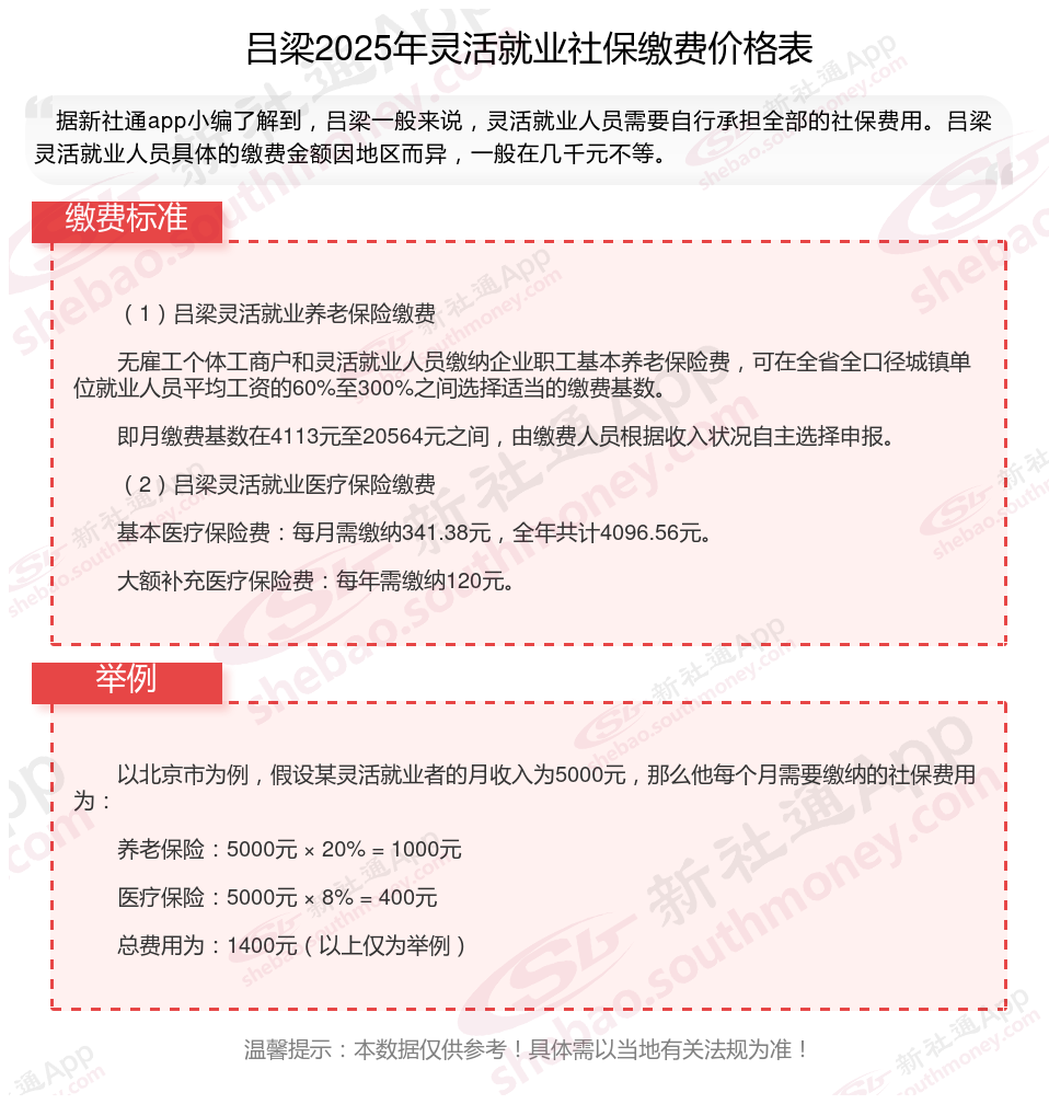 以上就是新社通小编带来吕梁灵活就业社保缴费知识,内容供参考,希望对你有帮助,欢迎关注/下载新社通APP解锁更多社保专业资讯。