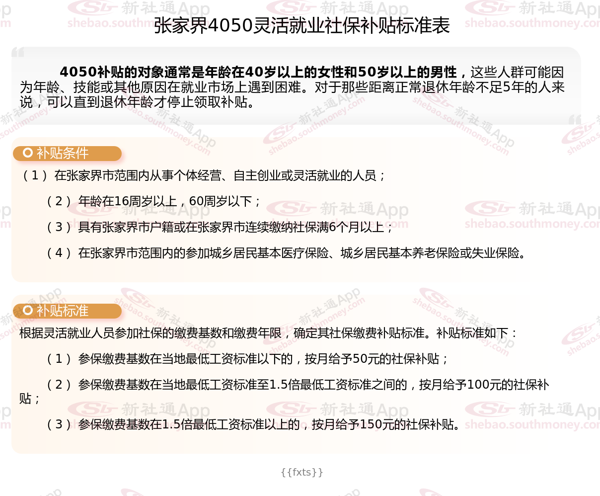 二、2025年张家界4050社保补贴标准是多少?领取条件是什么?