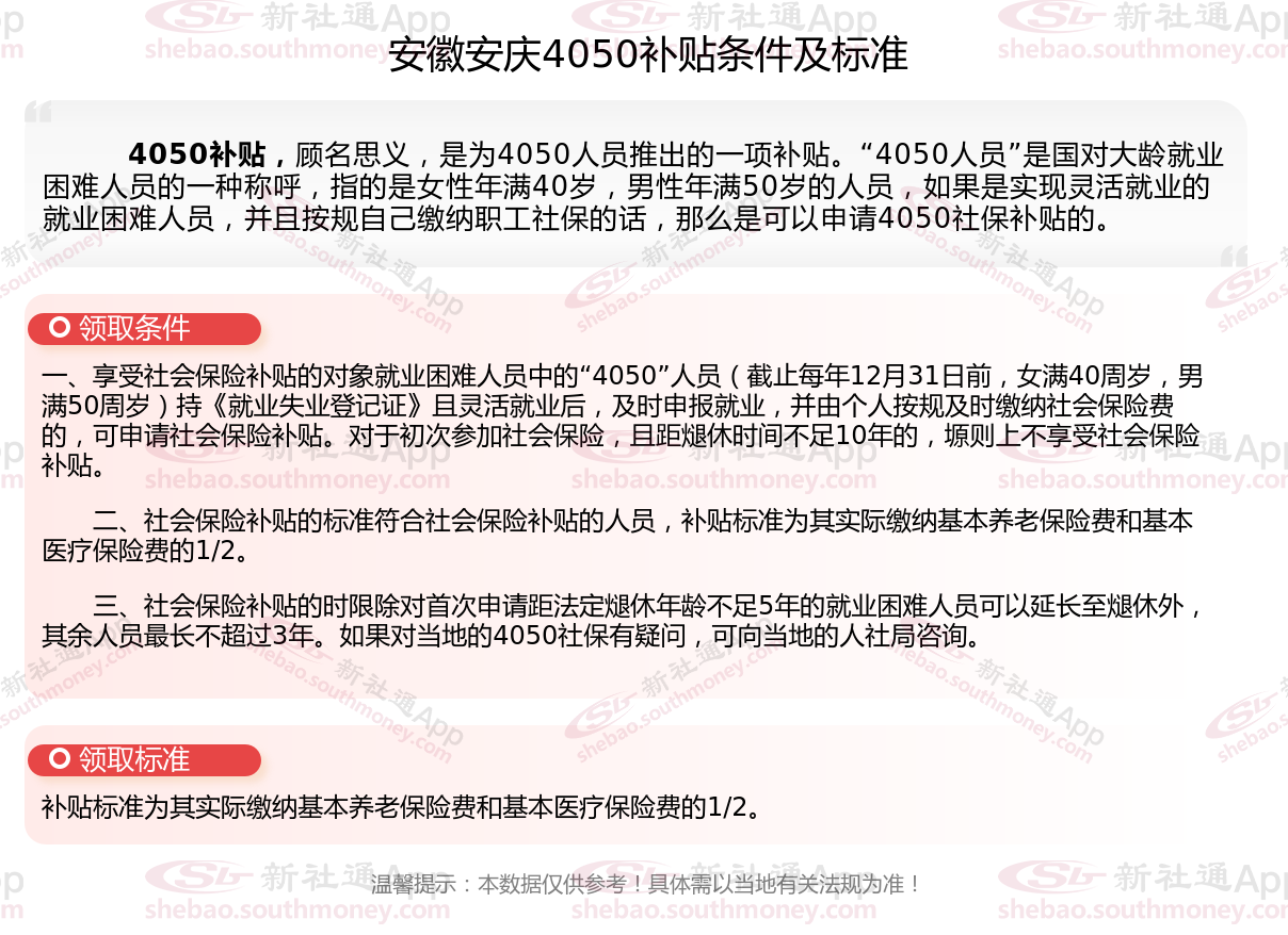 2025安徽安庆灵活就业4050社保补贴是一项面向特定年龄段的就业困难人群的社会保险补贴。