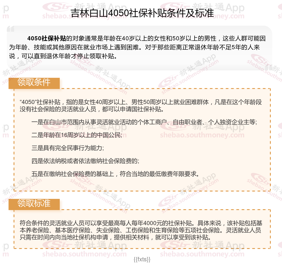 一、吉林白山4050社保补贴标准及条件2025年最新消息