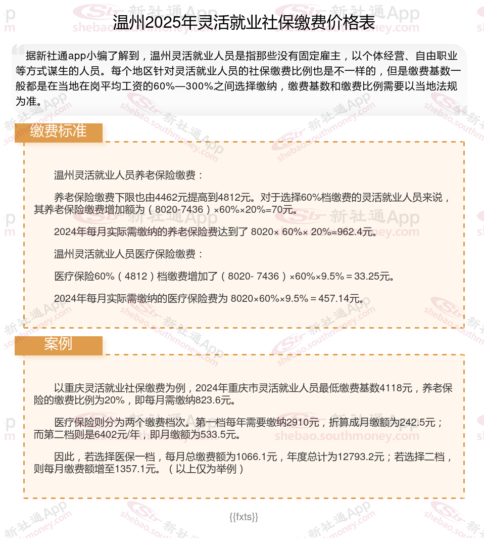 一、2025年温州灵活就业人员社保养老+医保缴费标准一年多少钱?