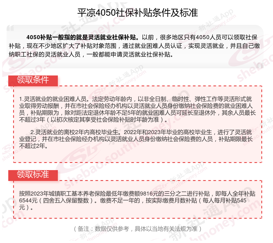 二、平凉4050社保补贴标准及条件2025年,最新如下