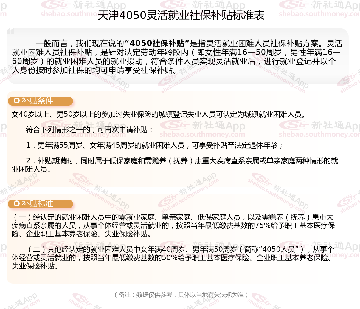 以上就是天津4050灵活就业困难人员社保补贴的相关内容,欢迎关注新社通/下载新社通APP了解更多五险一金专业资讯。