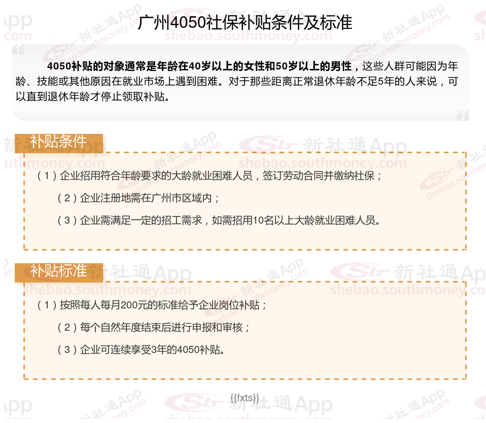 二、2025年广州4050社保补贴标准及条件,最新如下: