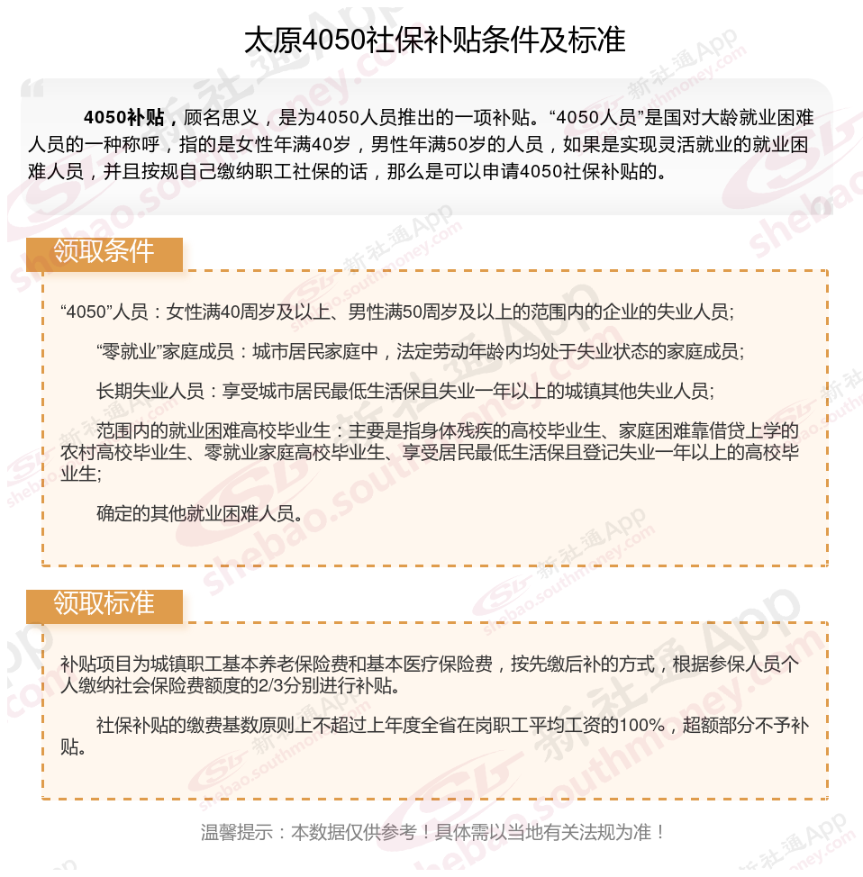 2025太原4050补贴主要针对的是年龄在40岁以上的女性和50岁以上的男性,这些人群通常因为年龄较大而面临就业困难。