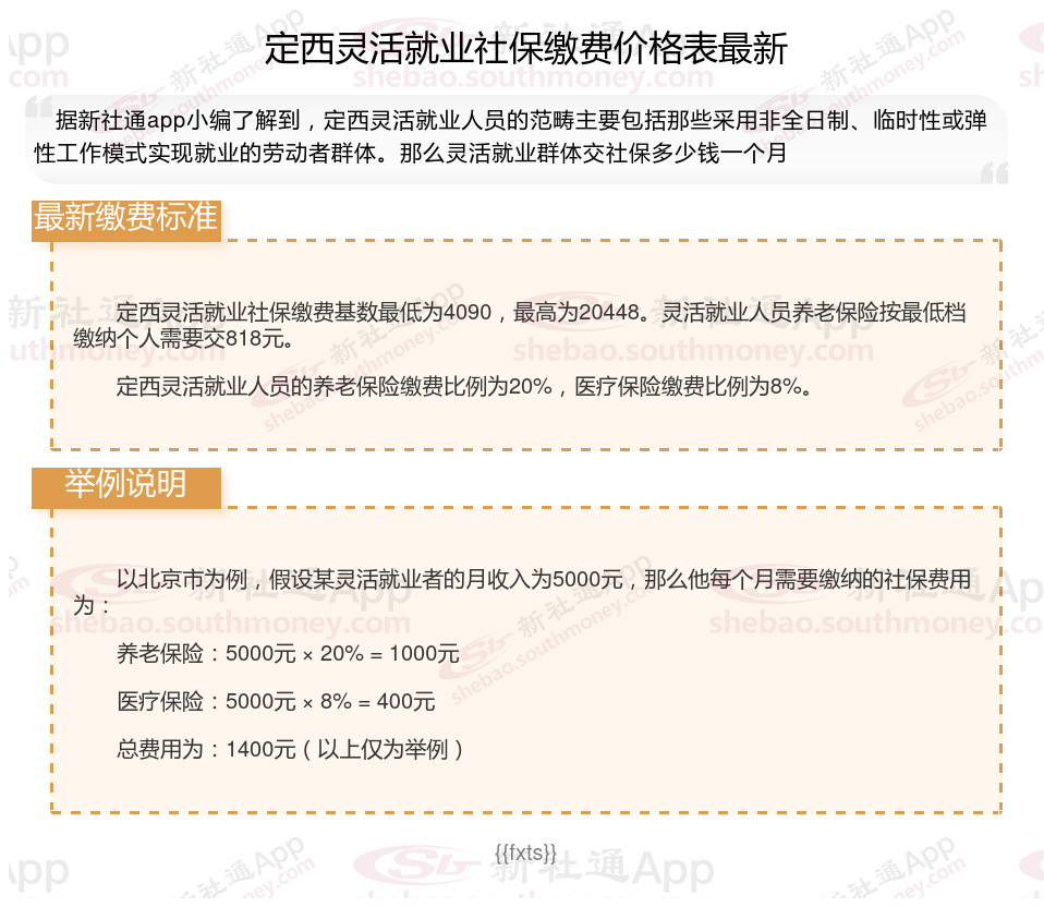 以上就是带来定西灵活就业社保缴费标准相关知识,内容供参考,希望对你有帮助,欢迎关注/下载新社通APP解锁更多社保专业资讯。