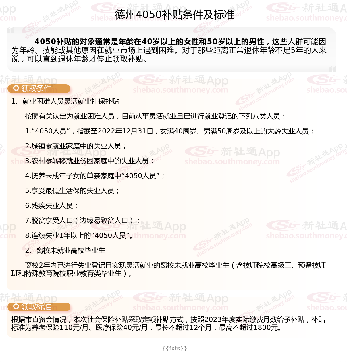 一、2023-2024年德州4050社保补贴标准及条件是多少?