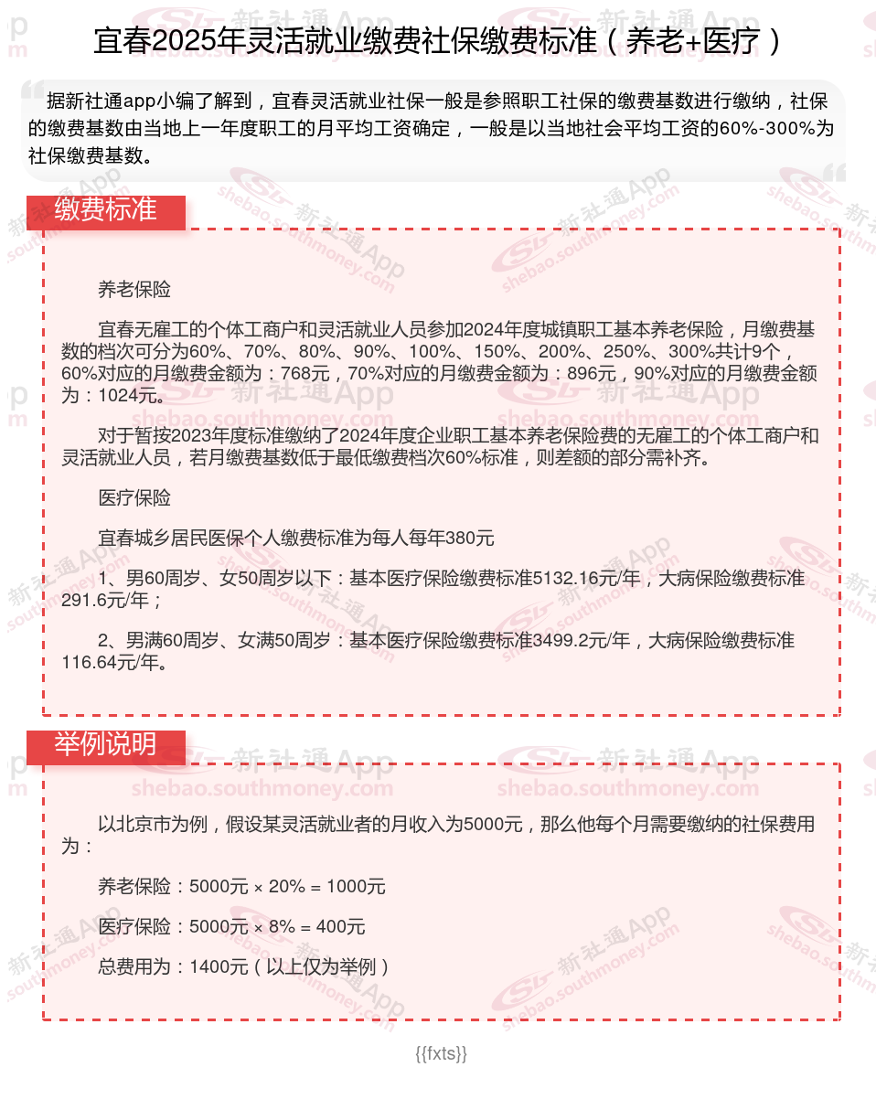 据新社通app数据显示,宜春灵活就业人员养老保险缴费基数2024-2025年最新标准如下: