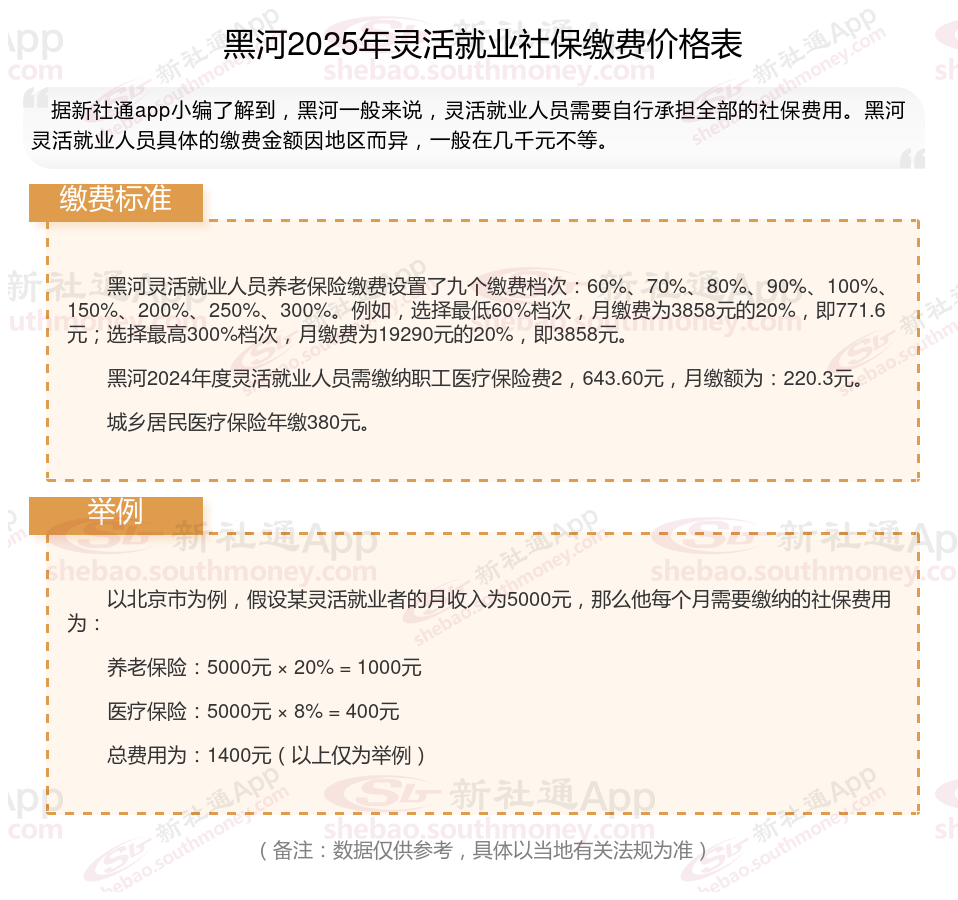 黑河灵活就业人员基本养老保险缴费基数暂按不低于4206元;