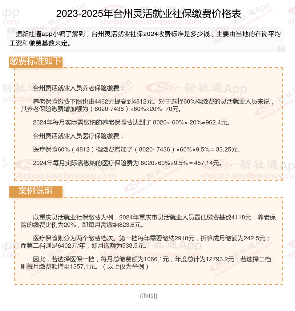 那么,个体户社保是多少钱一个月 台州灵活社保交多少钱?根据新社通app-社保缴费查询工具提供的2025社保缴费标准详情数据: